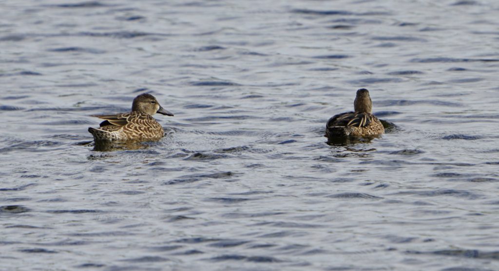 January 17, 2026- Below, a new species arrived. They are two female Green-winged-teal ducks. The males are colorful. That photo is the male is pulled from the Internet.