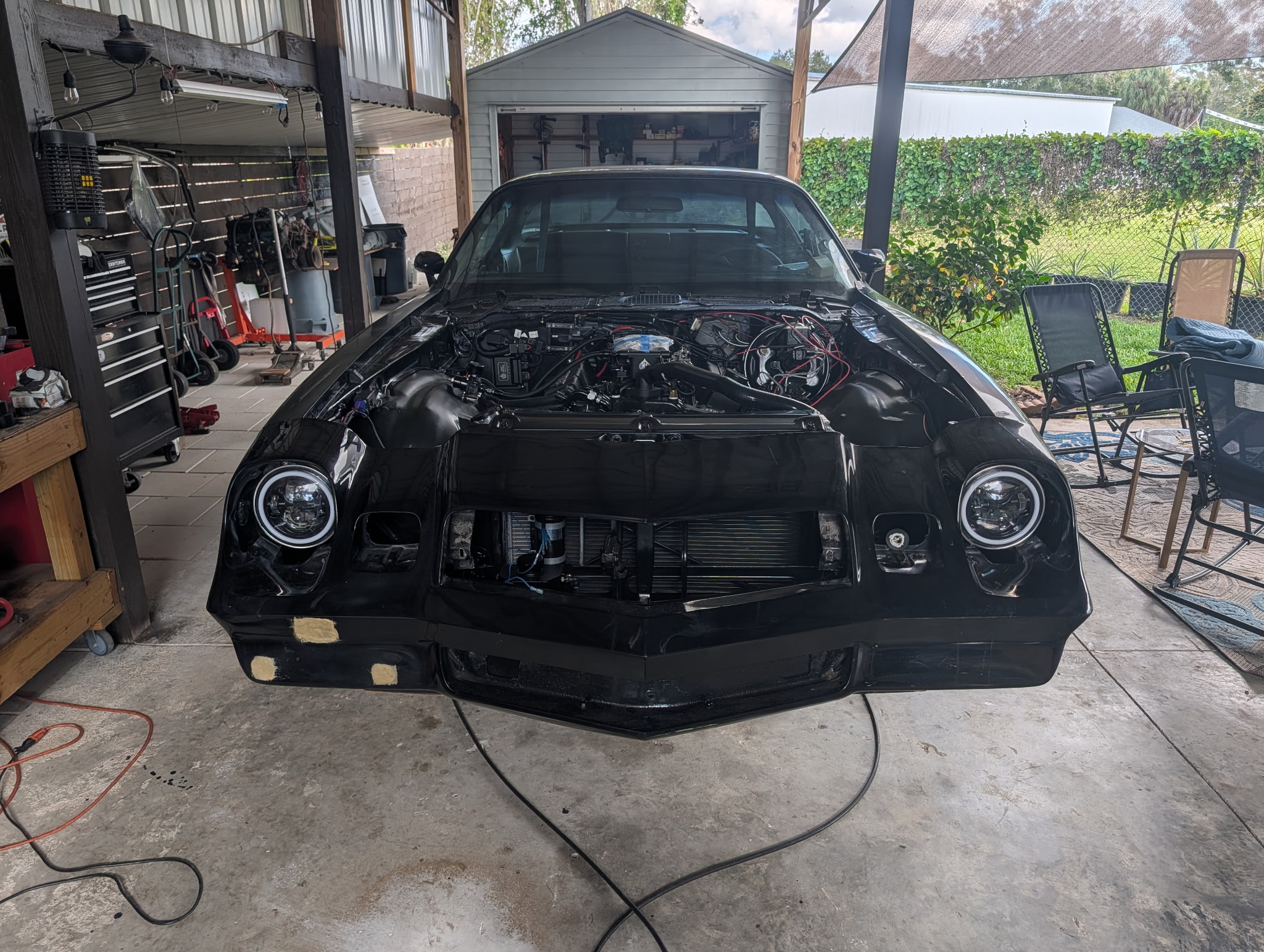 February 2026- Below, the car is put back together and driveable. The 530-hp engine is in. All of the electronics are new. The interior looks the same, but under the carpet and ceiling is soundproofing. The external body will be painted last, but will look like a 1979 Camaro. This is a nice restomod that would cost $100,000 to buy (i.e., $45,000 actual cost, plus labor)